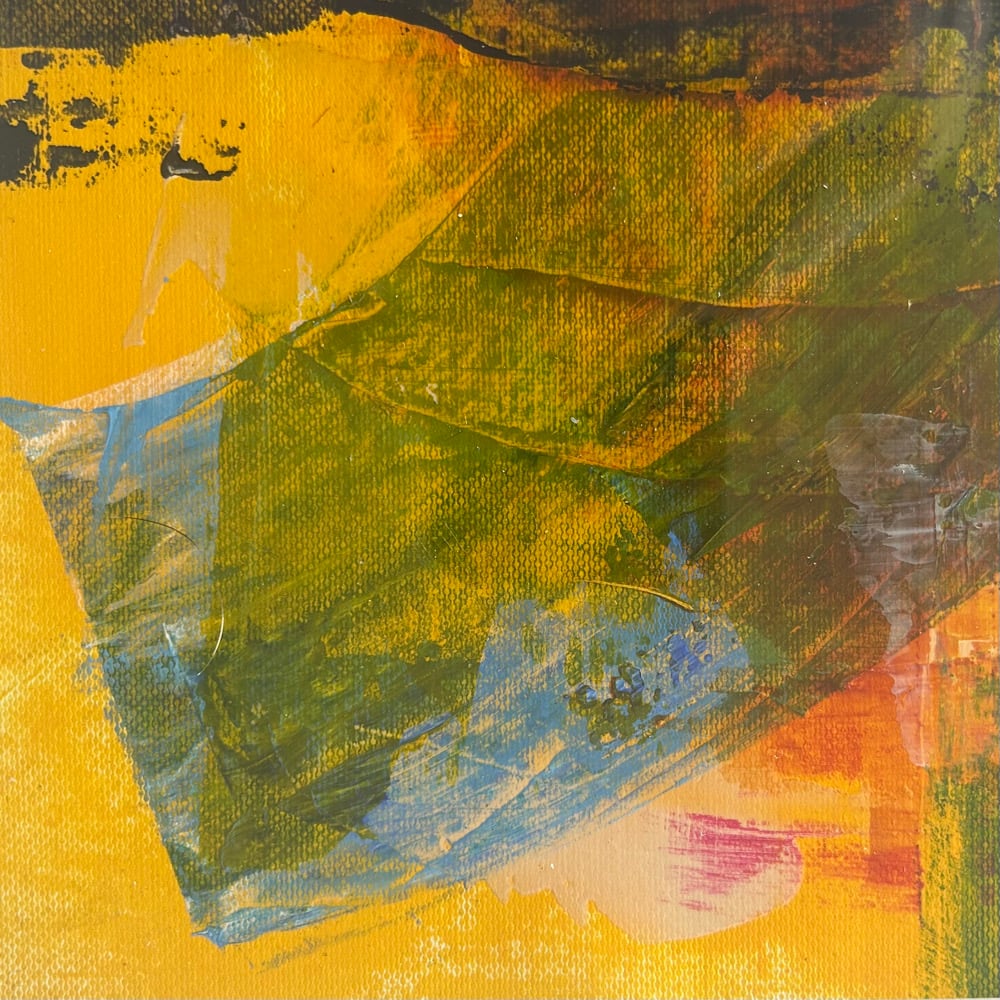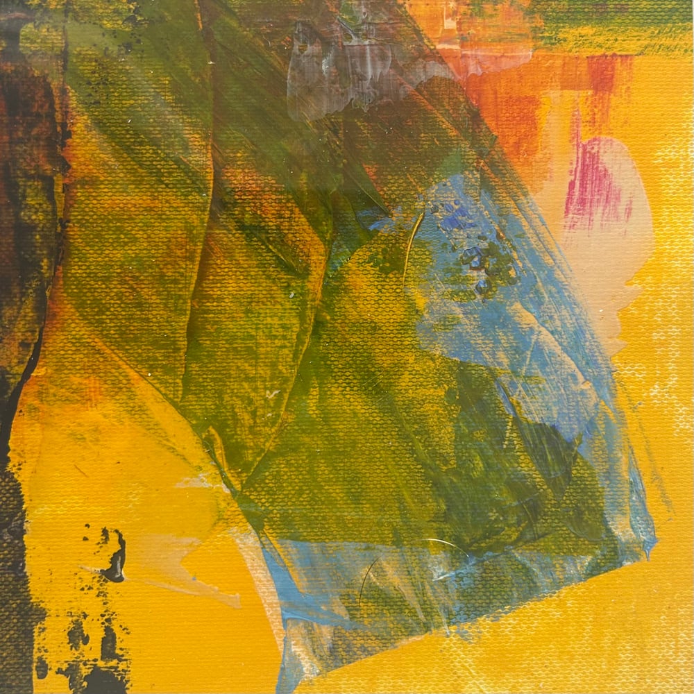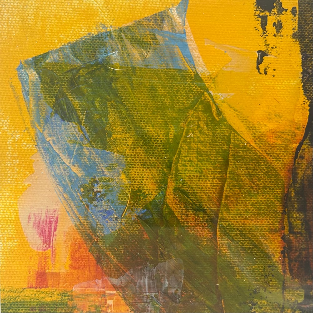 The original painting is 14/15cm square and is mounted in a white frame with glass.