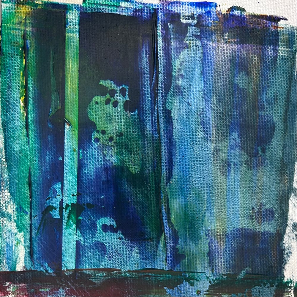 The original painting is 14/15cm square and is mounted in a white frame with glass.